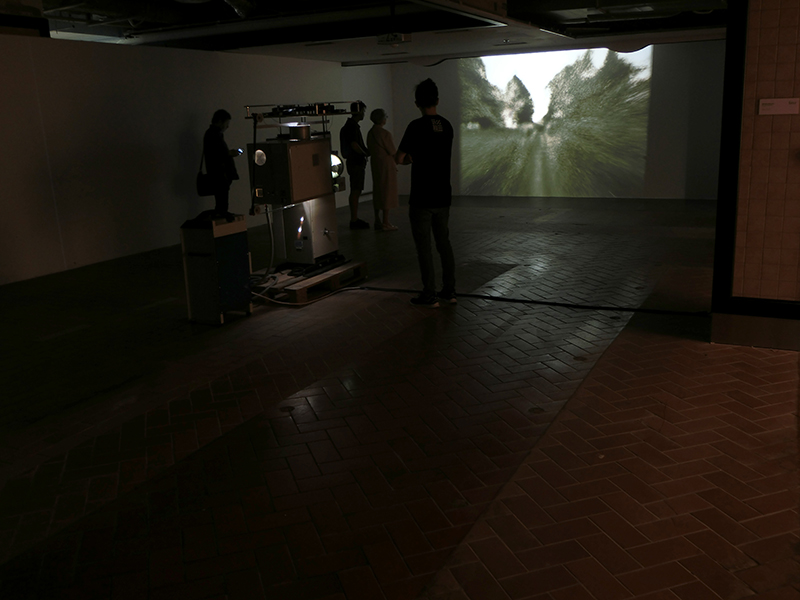 brouillard), walking trajectories from Larose’s parents’ house into a lake nearby are superimposed onto a 1000-foot strip of 35 mm color reversal film. With the aperture just slightly opened, only the brightest spots of each walk leave a trace on the strip. On the screen we see a landscape of pulsating light that is both concrete and abstract at the same time, drawing attention to the material and chemical processes of the medium as well as the visceral qualities these can produce. A phantom ride where the phantom seems to be both the camera that registers as well as the world it records.”